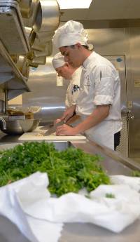 Culinary arts students will gain the fundamental knowledge and skills to prepare to be an accomplished professional in the hospitality industry. Students will be introduced to all of the stations within a commercial kitchen including hot service line, sauté, salads, soups, sauces, and all aspects of service. The students will intern in a full service, student run kitchen.