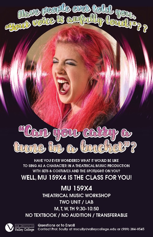 This is a movie of SBVC's students in MUS 159x4: Theatrical Music Workshop. The class this semester was only eight weeks long with a range of experiences represented. Some of the recordings are of fledgling opera singers working through language, vocal technique and the very complex art form of arias and recitatives. Others have some operatic experience, hence this is reflected in their performances of arias and recitatives. While this Movie may not be entirely entertaining, it is entirely instructive! It is indicative of the hard work done online in the past eight weeks by students working from home. Any students interested in taking such a class should contact Matie Scully at mscully@valleycollege.edu to obtain a Pre Requisite Challenge form to expedite enrollment in this class.