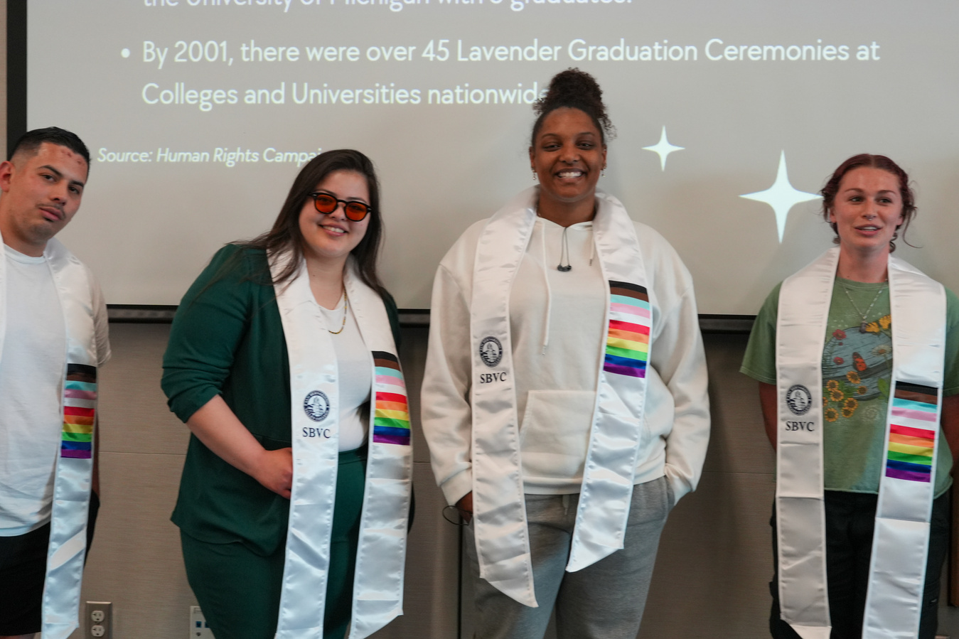April 30 - Lavender Grad: SBVC's second annual Lavender Grad celebrated the college’s LGBTQIA+ graduates. Adorned in special pride flag sashes, the event highlighted the students' achievements and personal identities. Lavender, symbolizing diversity and gender fluidity, added significance, especially with LGBTQIA+ staff members participating.